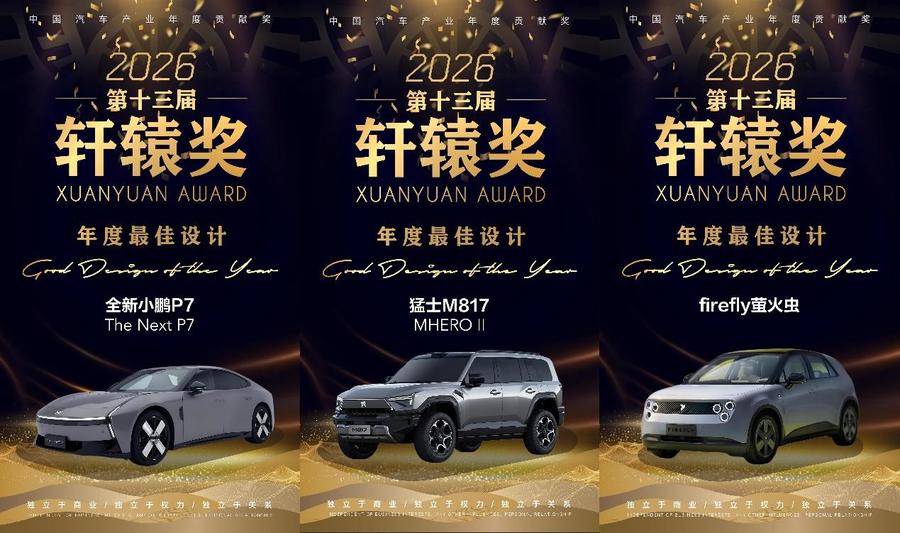 “中国年度最佳设计”则花落猛士M817、全新小鹏P7、firefly萤火虫,三款车型在造型语言、空间布局等方面的创新设计,成为行业创新的典范。