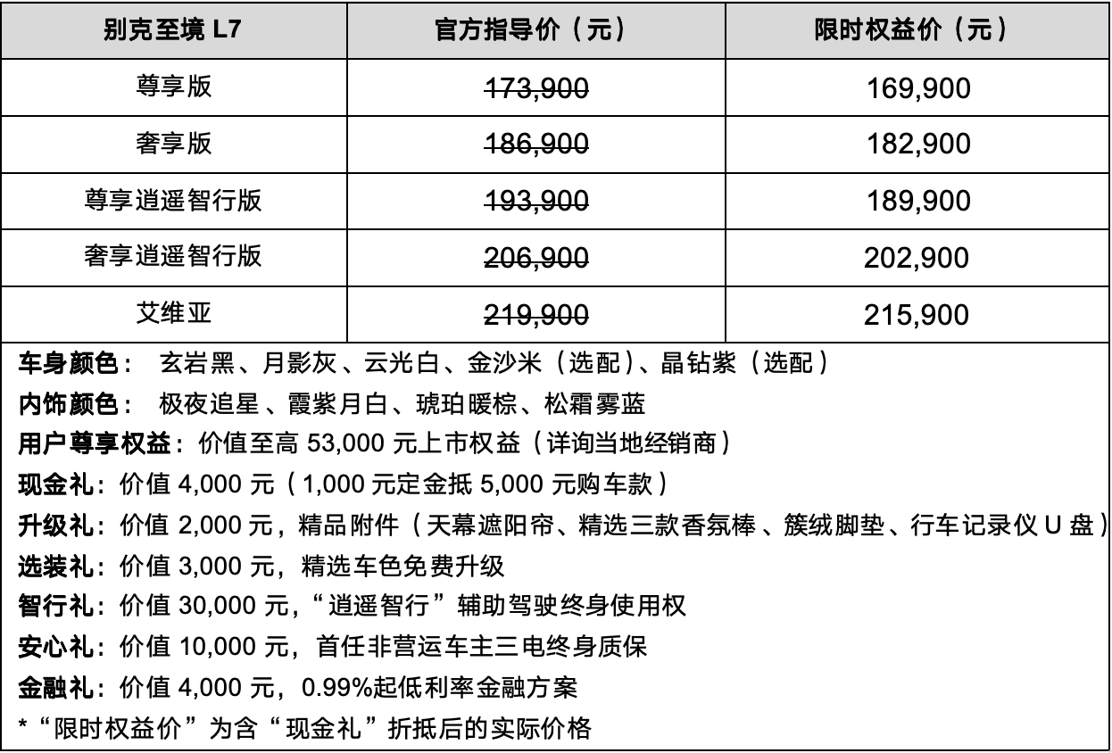 即日起,用户可通过别克官网、iBuick App、Buick小程序、别克抖音直播间,或别克全国授权经销商门店下定。在10月31日前完成线上下定并支付定金,且在12月31日完成车辆交付和开票的用户,即可享受限时权益价及丰厚限时上市权益。