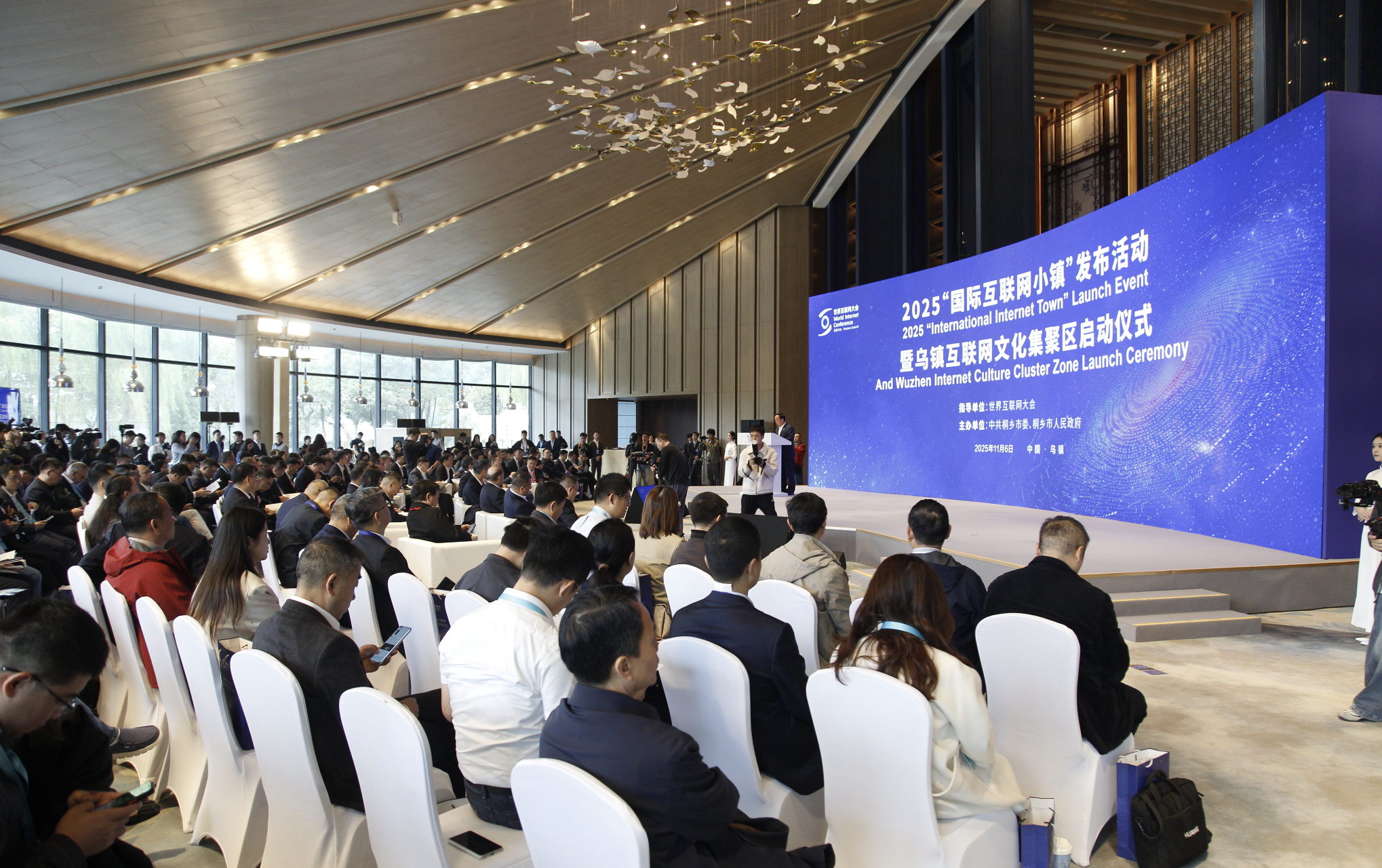 11月6日上午,2025“国际互联网小镇”发布活动暨乌镇互联网文化集聚区启动仪式在桐乡乌镇云舟宾客中心水天阁隆重举行。