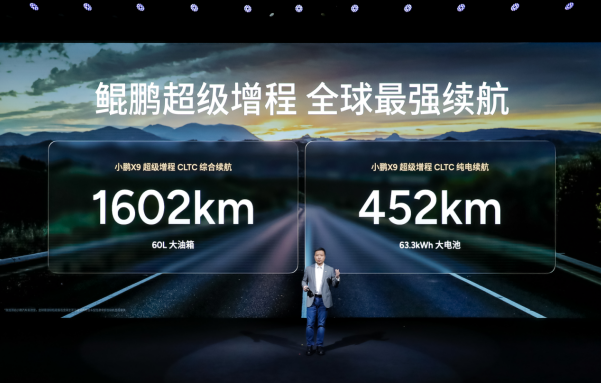 2025年11月6日,小鹏汽车在广州小鹏科技园成功举办小鹏X9鲲鹏超级增程技术发布会。会上,小鹏汽车正式推出全新一代增程技术解决方案——鲲鹏超级增程,终结传统增程用户面临的纯电续航短、充电速度慢、综合能耗高、亏电动力弱、增程噪音大的五大痛点,并宣布首发车型小鹏X9超级增程即日起开启预售。新车推出Max和Ultra两个版本,预售价格分别为35万元和37万元,预订可享受 99 元意向金抵扣 5000 元购车金、限时 0 元享价值 8000 元 20 英寸星耀悬浮轮毂、限时 0 元享价值 12000 元座舱升级套装,权益即日起生效至新车上市日。小鹏X9超级增程作为全球续航最长大七座,CLTC纯电续航达452km,CLTC综合续航达1602km,引领小鹏汽车开启增程全新纪元。