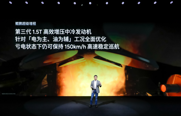 增程车的本质是一台纯电车加一副增程器,最好的增程,源于最好的纯电。鲲鹏超级增程技术是小鹏汽车十一年纯电技术的衍生成果,其以行业领先的 “超快充大电池+大油箱” 组合,并配备第三代1.5T高效增压中冷发动机,终结传统增程用户的五大核心痛点。