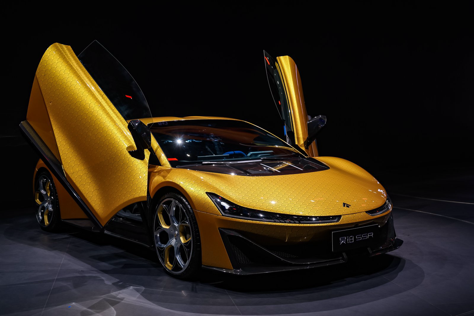 云纹金高定版本,更在广汽昊铂SSR极致性能基础上,注入深厚的文化哲思与美学追求。深度植根中华传统文化。车身采用暖调金色涂装,灵感源自经典超跑黄的高辨识度基因,并赋予黄金质感以传递尊贵属性。尤为瞩目的是,全车手工绘制逾2万个“朵云纹”, 耗时高达 200 余小时;设计灵感源自魏晋至唐宋时期的祥瑞纹样,曾见于敦煌经卷与宋代瓷器,寓意“吉祥聚合”,每一笔云纹均由匠人纯手工精雕细琢,覆盖整车表面,使每台广汽昊铂SSR云纹金高定版车型皆成为独一无二的移动艺术品。