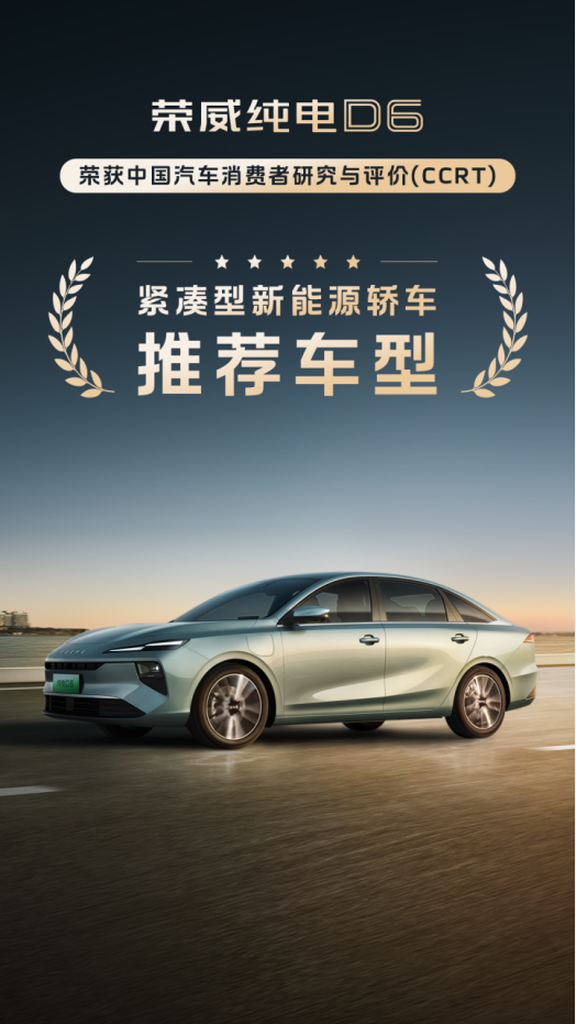 近日,荣威纯电D6凭借卓越产品力,入选中国汽车消费者研究与评价(CCRT)紧凑型新能源轿车推荐车型Top5名单。这一权威认可,不仅彰显了用户对荣威D6的极高满意度,更为消费者提供了一个极具参考性的购车指南。
