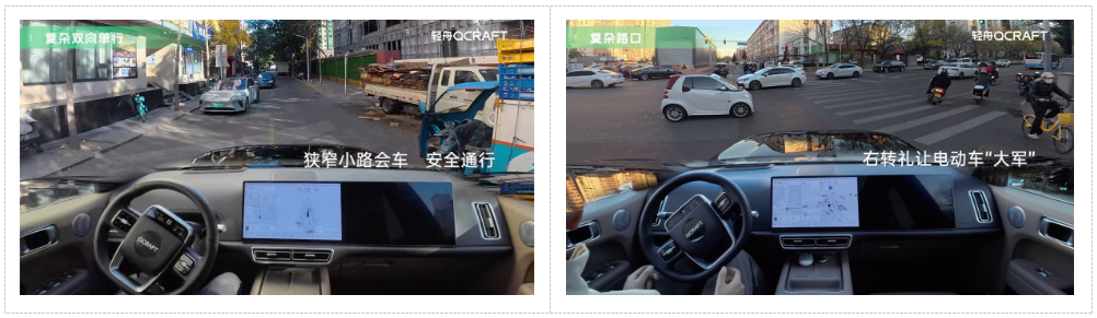 基于轻舟“安全惟先、行稳致远”的理念,该方案凭借安全端到端大模型,具备拟人化防御性驾驶能力,全程守护行车安全。在面对无灯T字路口、人车混行窄路等高频风险场景时,系统可提前预判、减速防御,不抢不急,预留充足安全余量,从行车到泊车全程守护。