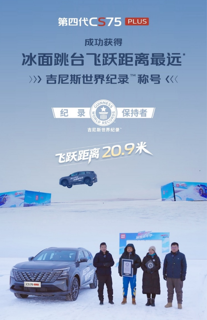 从冰原疾驰、凌空飞跃到稳健着陆,长安第四代CS75PLUS以一场在权威目光下的极限挑战,完整演绎了由“新动力、新智能、新安全”构成的燃油车核心竞争力。在央视与吉尼斯的双重认证下,这项纪录不仅衡量了距离,更定义了新时代燃油车的可靠高度,也意味着这份更高的安全冗余为用户日常出行带来更多的可靠和安心。未来,长安汽车将继续坚守以用户为中心的初心,融合智能科技与匠心制造,持续打造高品质、高性能的出行产品,助力中国汽车工业向上迈进。