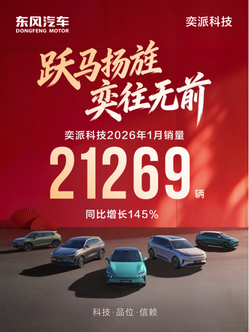 2月1日,奕派科技发布销量数据。公司 2026 年 1月销量21269辆,同比增长145%,赢得新年“开门红”。据悉,奕派科技旗下的东风奕派和东风风神品牌,2026年计划投放5款全新车型,支撑东风自主新能源事业高质量发展。