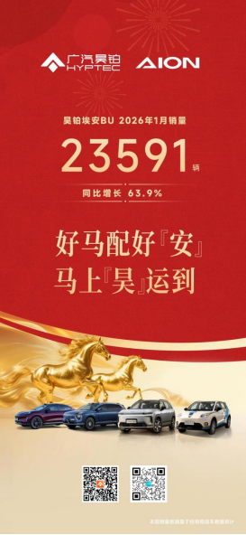 在昊铂埃安BU在组建后的首个完整月,便交出了一份亮眼成绩单,1月销量达23591辆,同比增长63.9%。这一逆势上扬不仅延续了2025年第四季度以来的增长势头,更初步验证了双品牌一体化运营在提升市场响应速度、强化渠道效能和释放协同价值方面的积极成效。