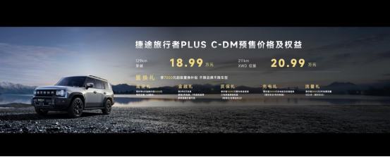 捷途旅行者PLUS,官方指导价18.99-19.99万元。捷途旅行者PLUS C-DM,官方指导价18.99-20.99万元。同时,捷途汽车还为消费者带来多重购车权益: