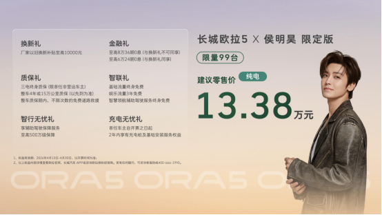 【中国·保定】4月13日,由长城欧拉携手品牌代言人侯明昊及其粉丝团队打造的共创产品——长城欧拉5限定版纯电版(以下简称“欧拉5限定版”)正式上市,建议零售价13.38万元,欧拉5限定版售价与长城欧拉5 580km激光雷达版一致,新增敦煌绿车漆、专属尾标、中央扶手箱刺绣等多项专属配置,并可享“换新礼”、“金融礼”等多重限时好礼,加量不加价。活动当日,侯明昊现身保定爱情广场,把精心挑选的专属礼物交到首批用户手中,并亲密互动。现场气氛高涨且热烈,不少粉丝朋友甚至不远千里从外地赶到发布会现场为侯明昊打call,并一睹新车的风采。