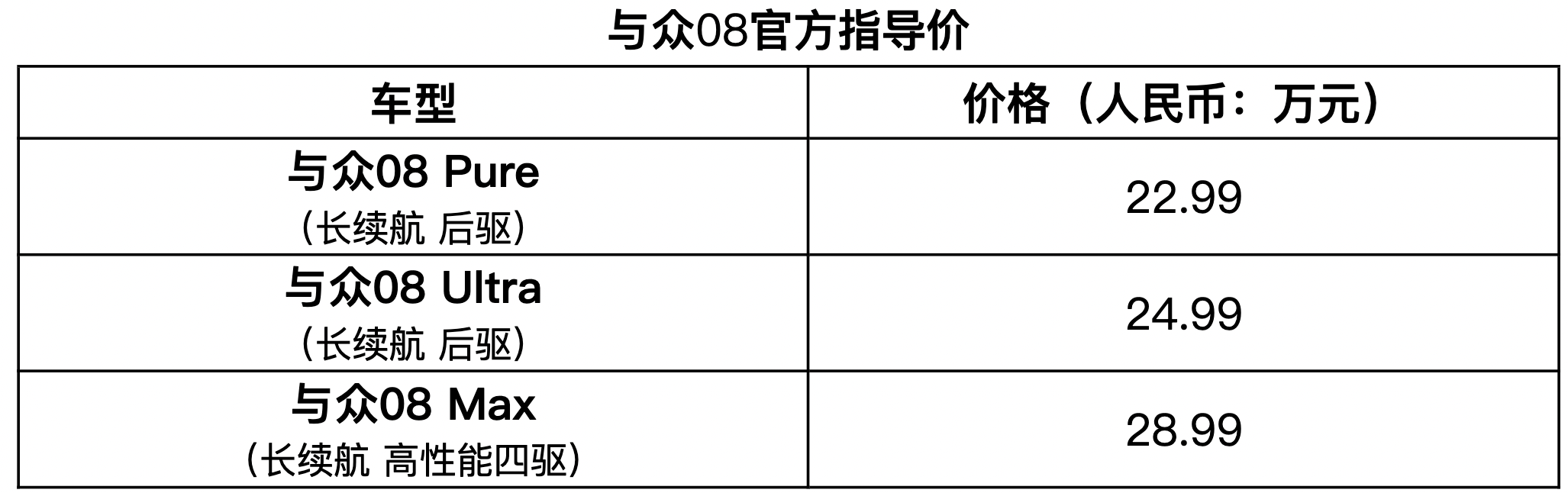 依托于丰富的服务生态,与众08不仅是一个贴心的出行伙伴,更带来了与众不同的用户体验,覆盖从购买到充电再到维护的全生命周期。