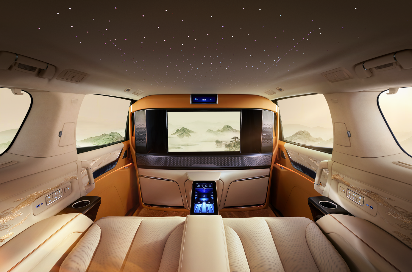 于座舱细节处,新车将《溪山雨意图》的山水意境深度融入内饰设计:136,092针「江山如画」鎏金刺绣打造环抱式山水座舱,同级唯一15mm进口鎏金羊毛地毯复刻山水流痕自然意境,星河绣帷星空顶棚点缀366颗星星,拥有8大星空模式与语音触发流星功能,让用户入座即享“人在车中坐,如在画中游”的沉浸式体验。