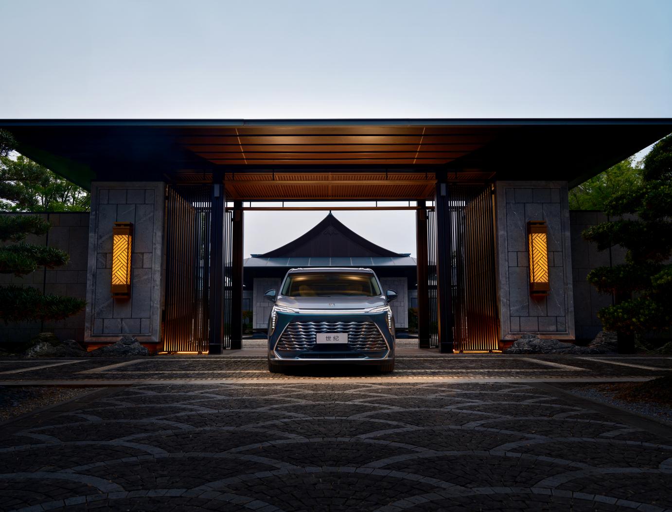 新款世纪CENTURY从宋元山水画作与古典建筑中汲取灵感,构建起完整的东方美学整车设计体系。四座礼尊版专属「关山飞雪」双色车身,命名源自文徵明传世名作《关山积雪图》,以石青石绿等天然稀有矿石颜色为灵感,经多道工艺淬炼,于车身之上复刻山雪辉映的东方意境;「飞檐展翼」前脸从传统建筑飞檐林瓦中取意,横向宽度大幅拉伸,搭配律动波纹格栅与高亮黑与电镀多材质拼接工艺,尽显不怒自威的磅礴气场。