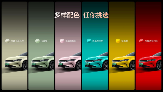 个性化层面,汉EV闪充版带来雾凇金、松影绿等五款潮流车色,并提供丰富的官方改色车衣作为选装,从哑光到亮面、从经典到潮流,用户可随心定制专属个性表达。